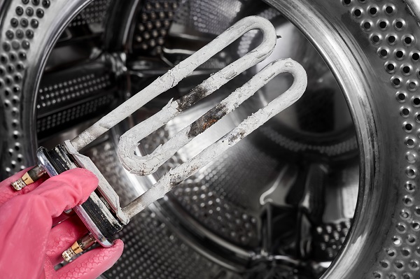 Componente di una lavatrice rovinato dal calcare.